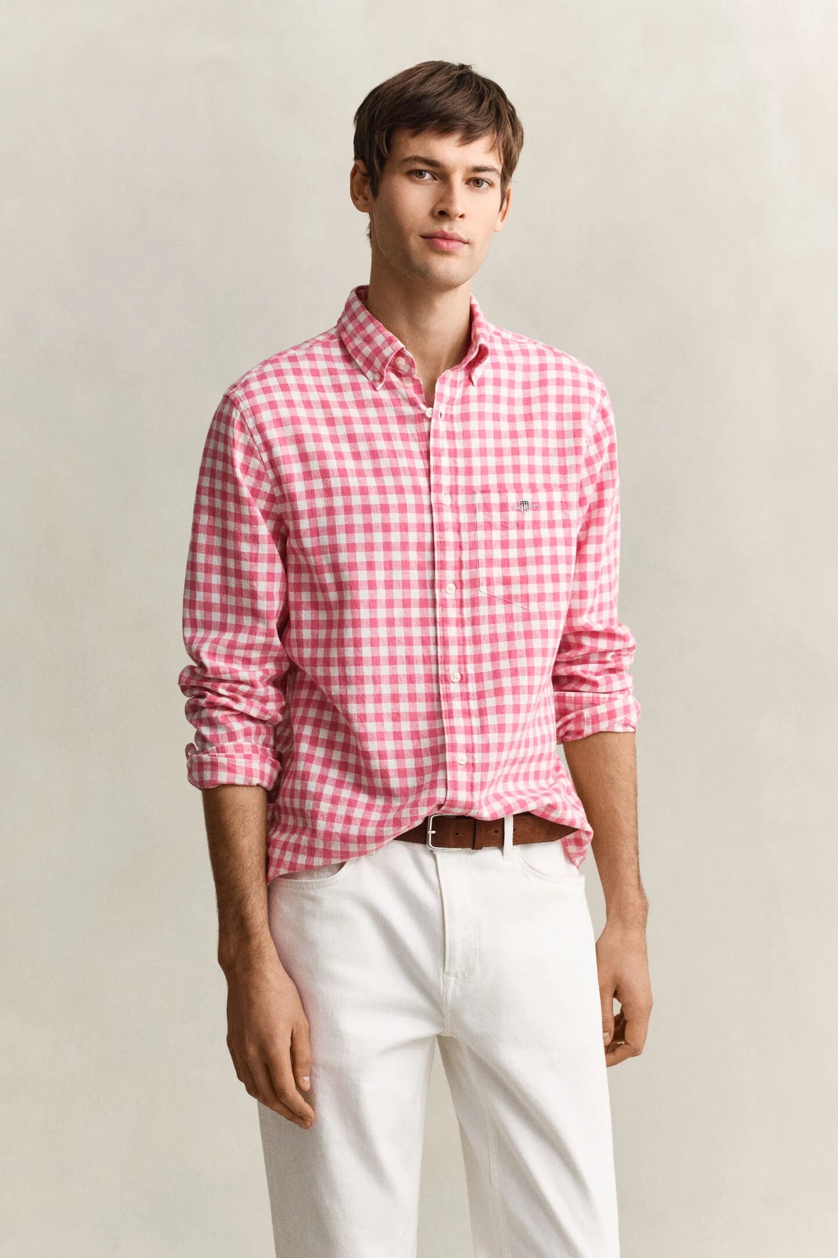 Ss26/3260017 Linen gingham L/S shirt